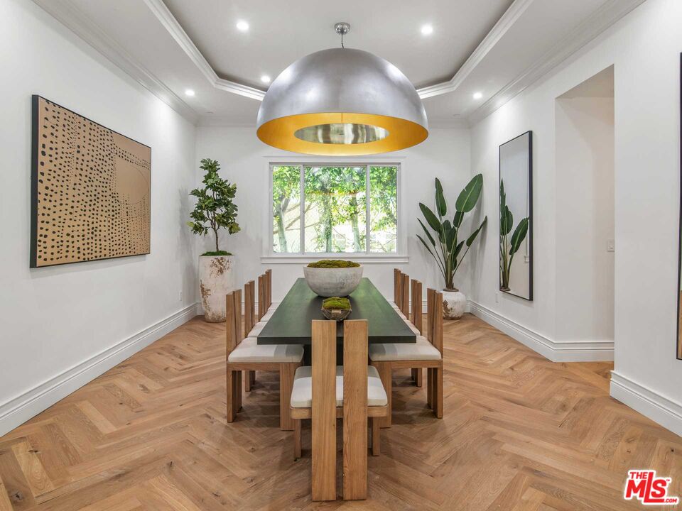 This residence offers you a 5453 sq feet of luxurious living space and invites you in a stunning arched entrance. The entry hall is sky lit and spacious and showcases the elegant, sloped staircase foyer on your left side. Bright and detailed coffered ceilings with recessed light are to be found throughout first floor, just like the exquisite custom milled European white oak floors.