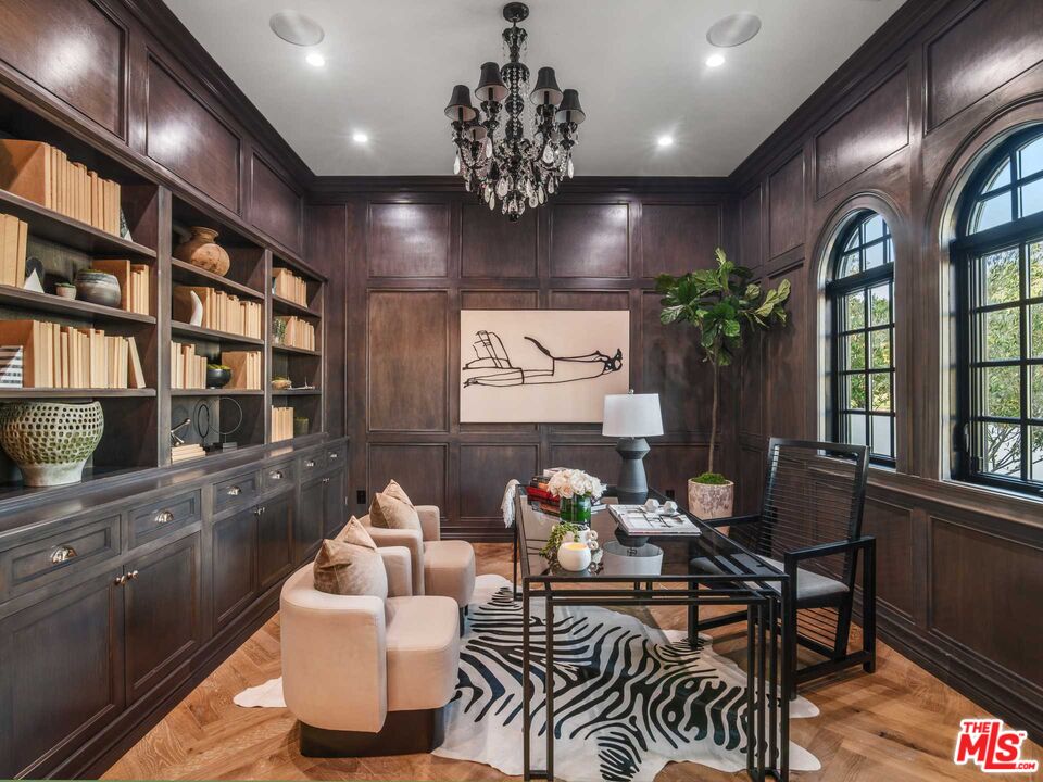 Darker wood tones are used differently in every room, to contrast and highlight features. Like in the fully paneled library with arched picture window, and in the cozy family room featuring an elegant fireplace, coveted in exquisite marble and are detailed with a beautiful dark mantle, matching the beautiful, coffered ceiling.